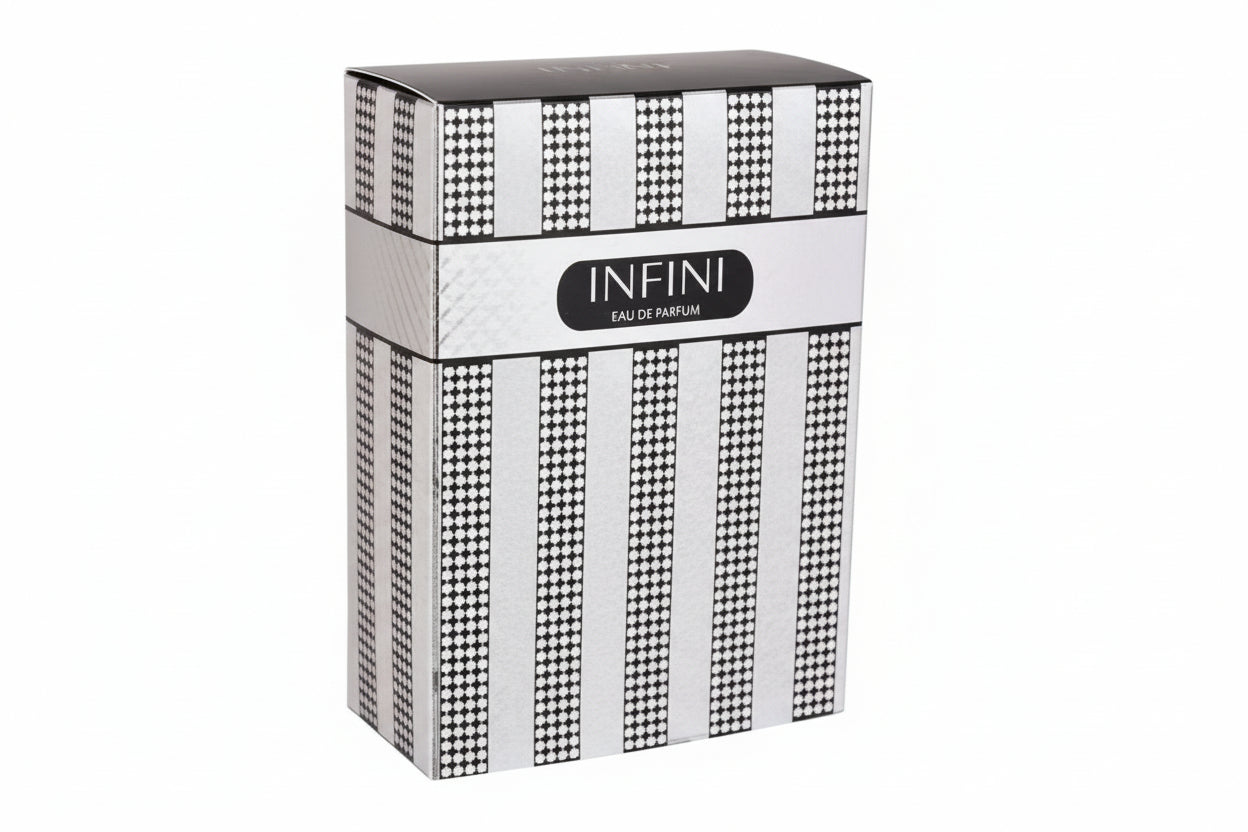 INFINI ist ein moderner Unisex-Duft mit eleganter Ausstrahlung und angenehmer Tiefe. Die Komposition wirkt frisch und gleichzeitig warm – perfekt für alle, die einen Duft suchen, der stilvoll, clean und langanhaltend ist.